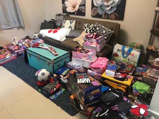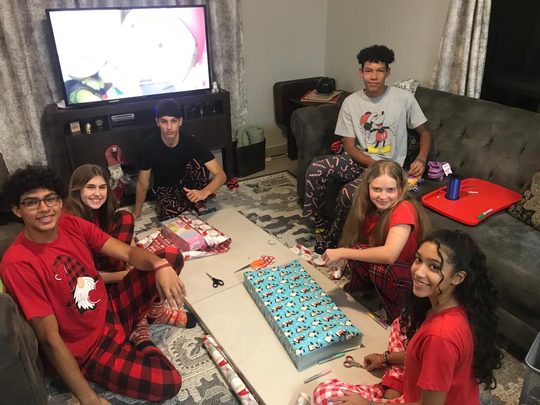 After the shopping, we had a plethora of gifts to wrap. Praise the Lord for Reeves’ friends. We had a wrapping party here at the house and all the gifts were wrapped up in a few hours.