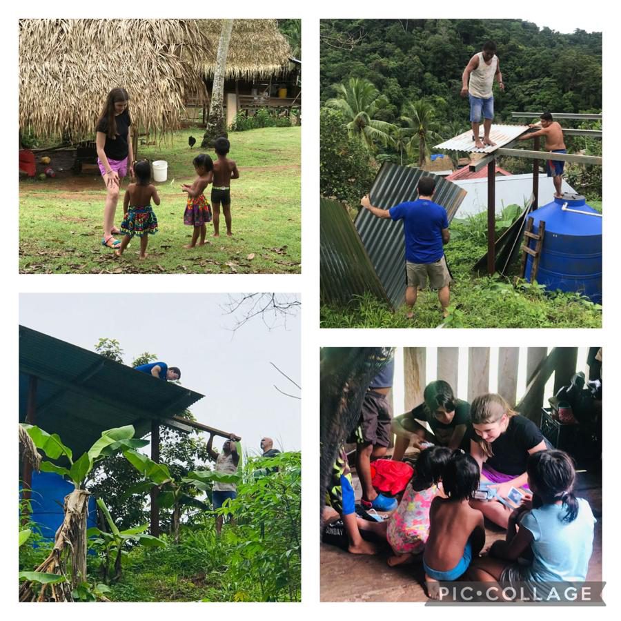 We returned to the Emberá village to complete the roof over the water system. I am not sure that Matt has medical clearance to be walking on a tin roof, but that did not slow him down! Reeves was happy to spend time with the kiddos there, and the kids were super excited to see her after such a long time.